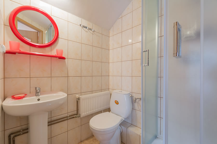 gościom proponujemy pokoje 1, 2, 3, 4 osobowe z łazienkami.
